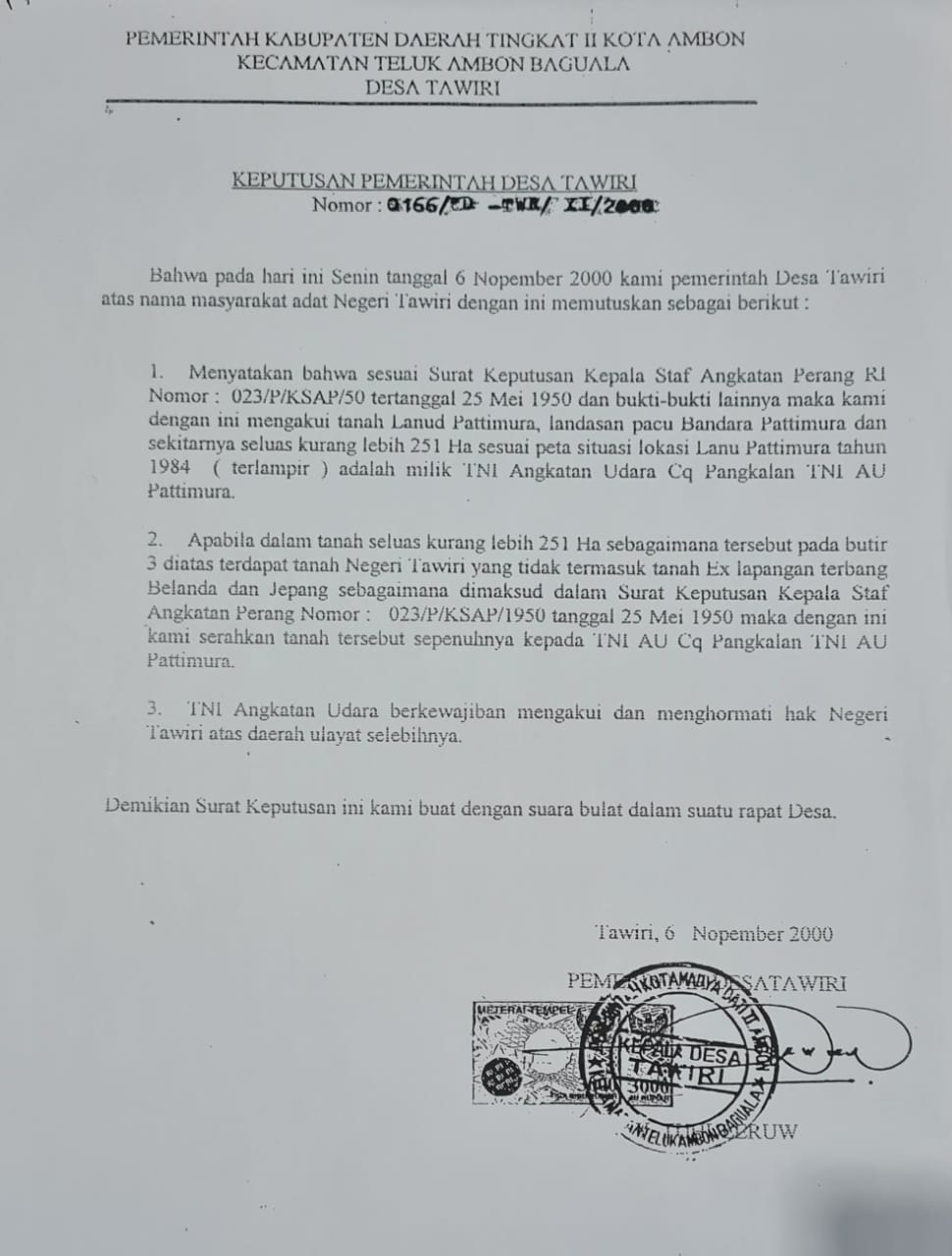 Berbekal Bukti Sah Aset Tanah, Lanud Pattimura Persilahkan Tempuh Jalur Hukum