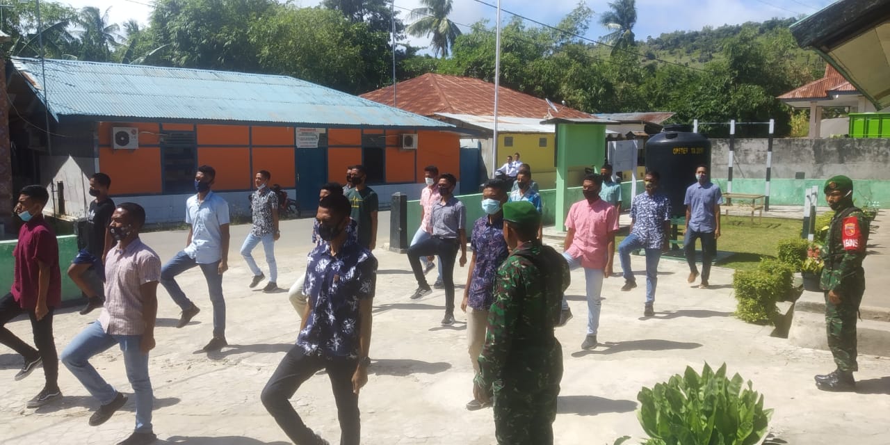 TIAKUR, SPEKTRUM – Serka O. Darkay bersama Sertu Ruslin Ibrahim memberikan pembekalan awal berupa materi Peraturan Baris Berbaris (PBB) maupun pengetahuan umum lainnya kepada pemuda yang telah mendaftarkan diri menjadi Prajurit TNI AD di halaman Makoramil Wonreli, Senin (22/02/2021).